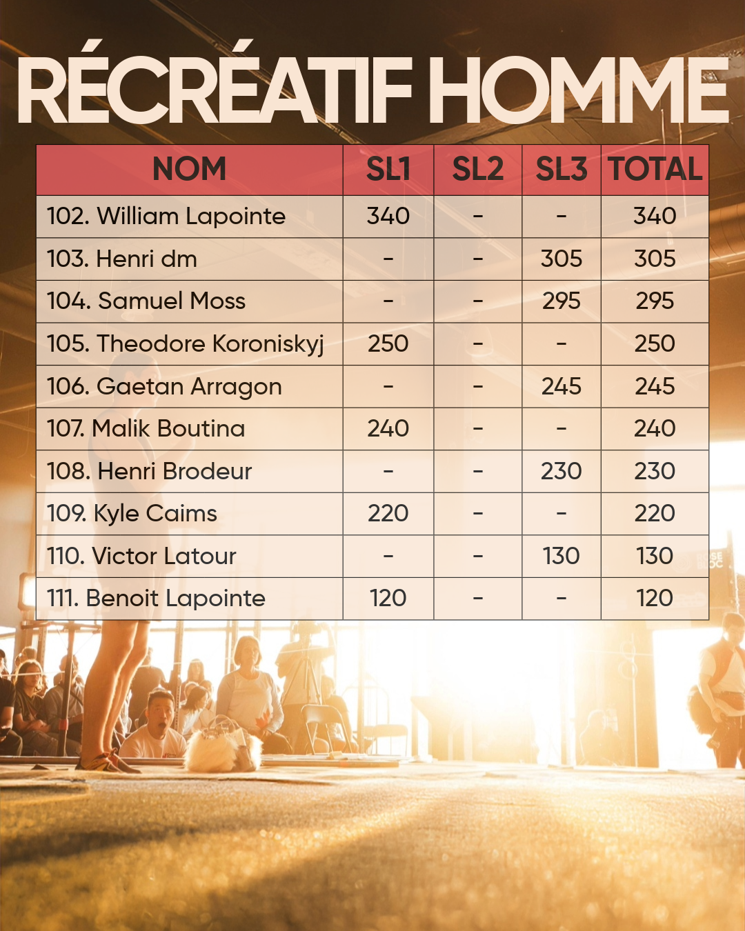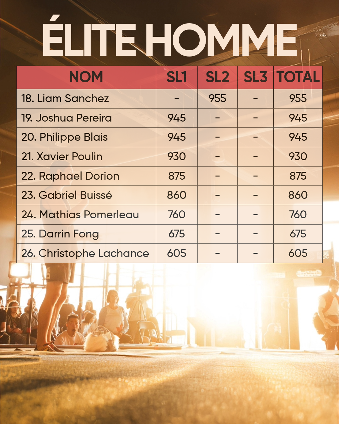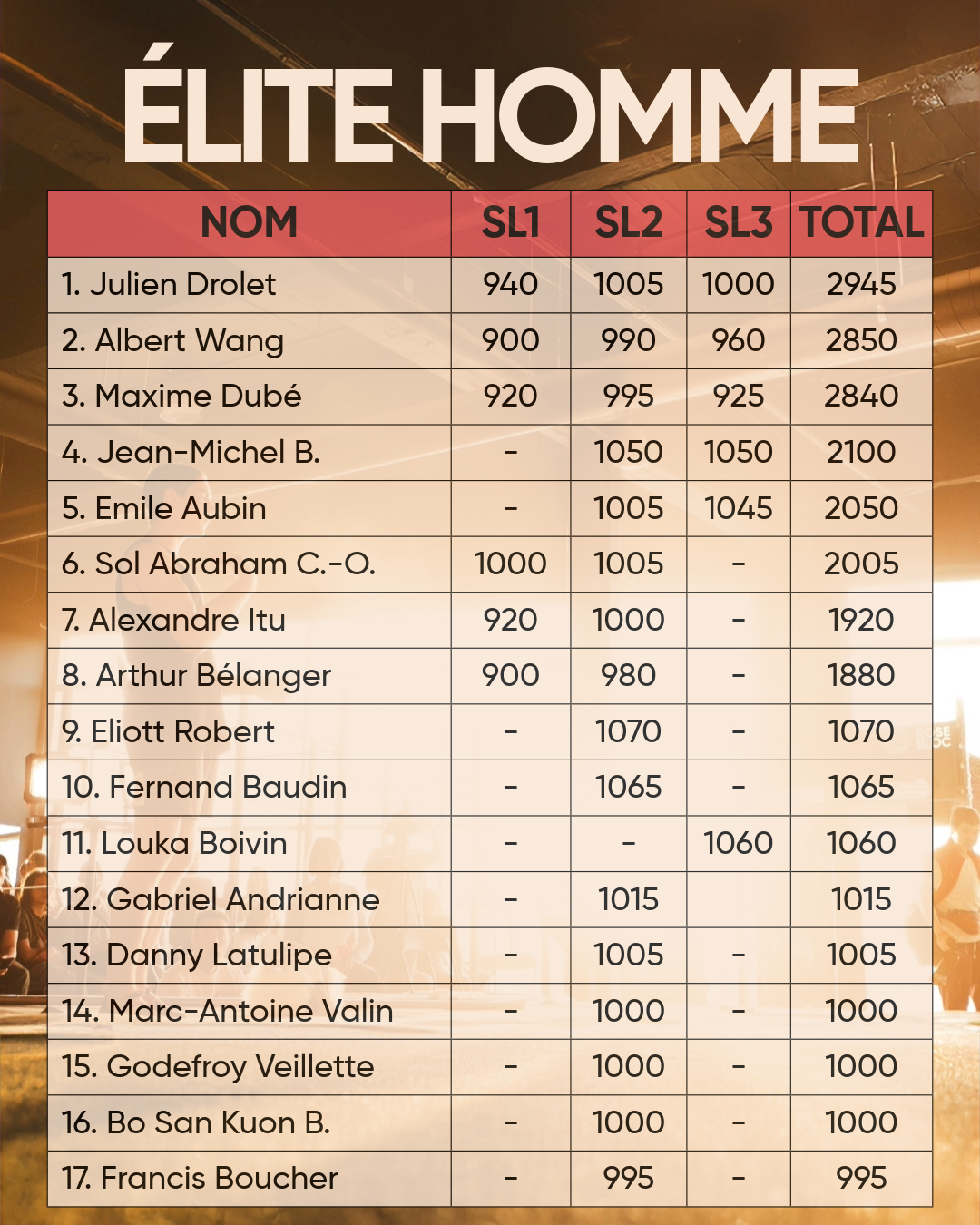 • Élite hommes (10 et +)