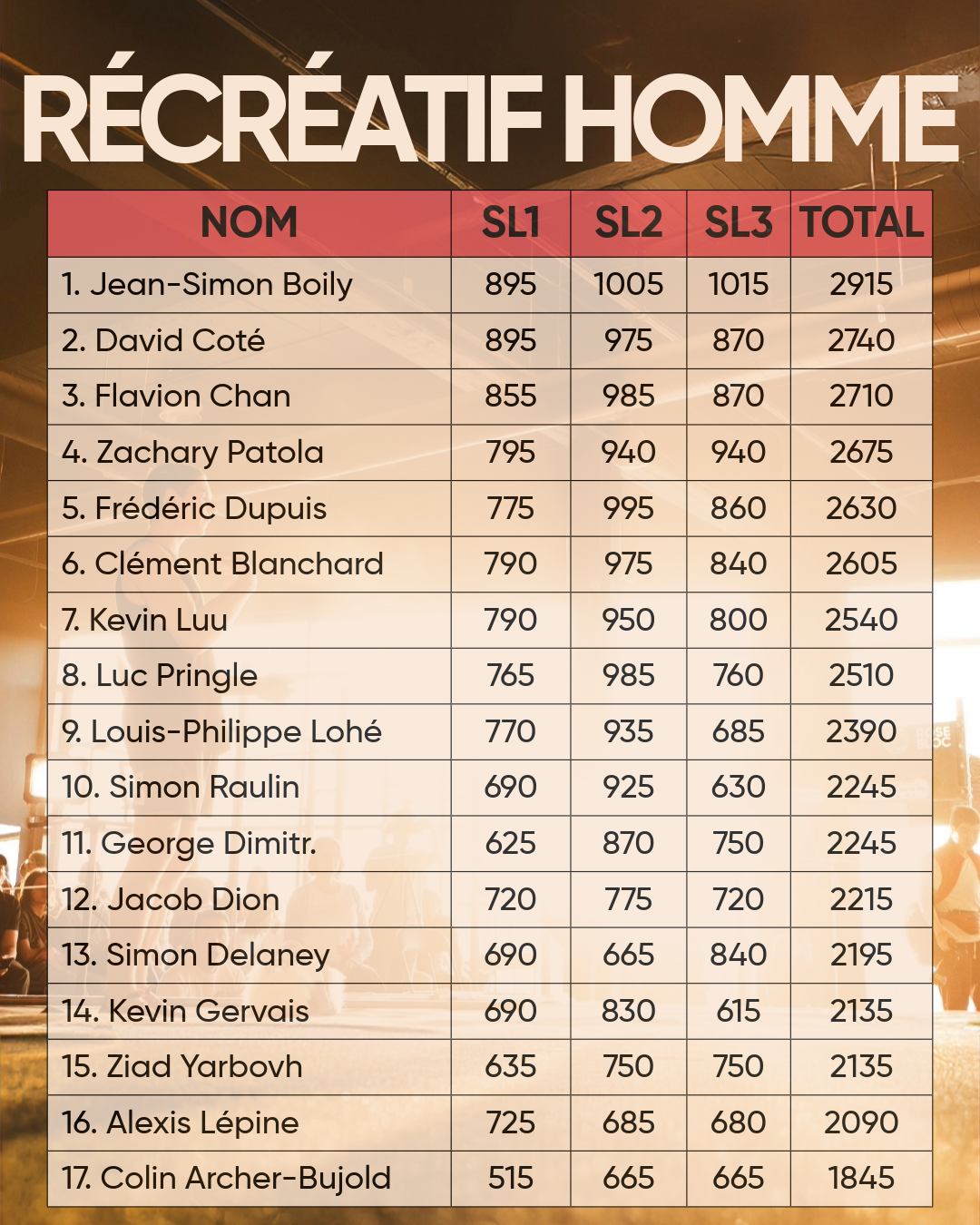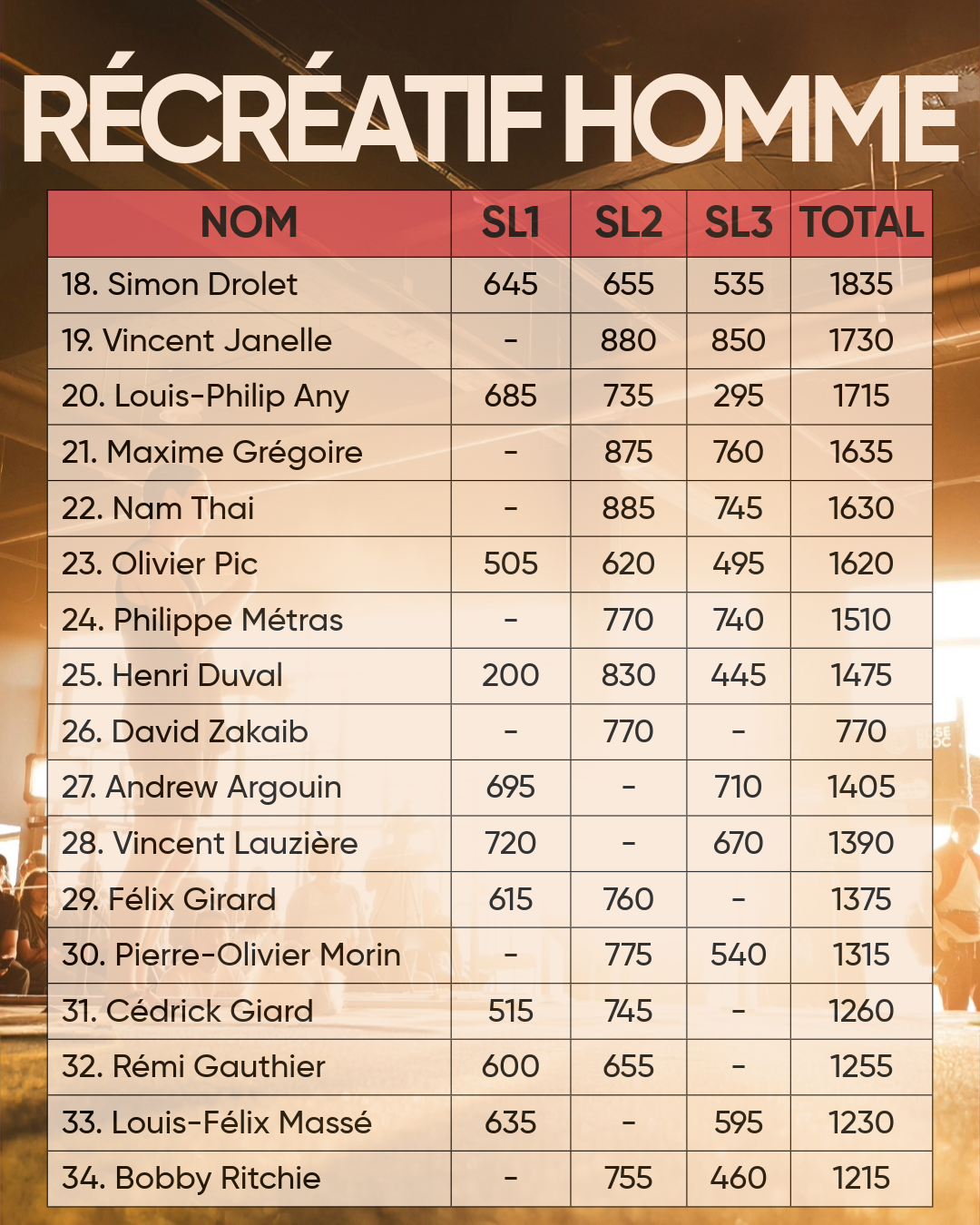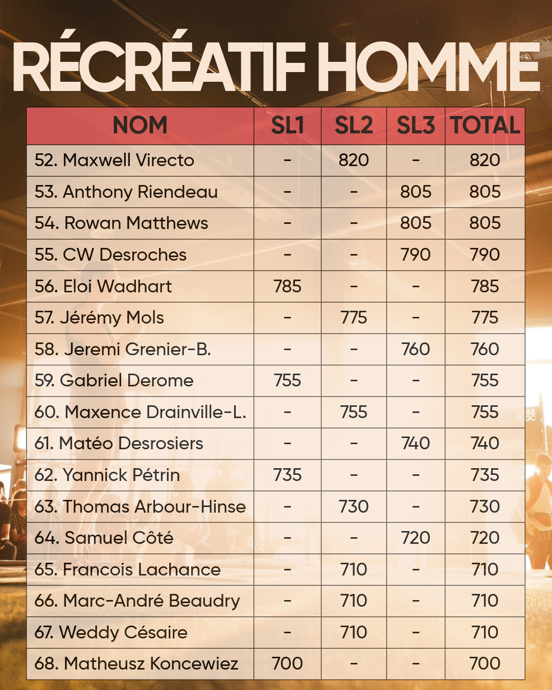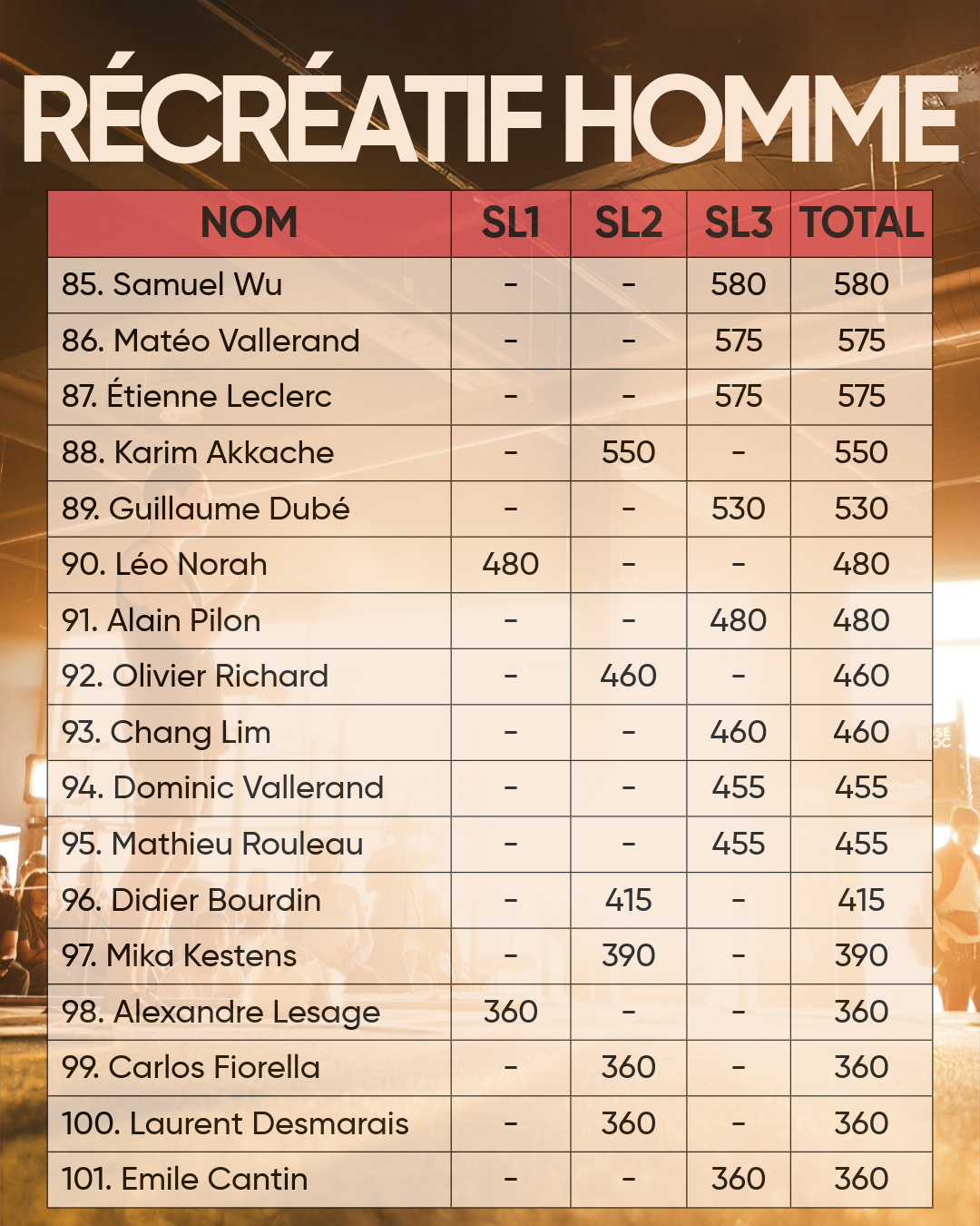 • Élite hommes (10 et +)