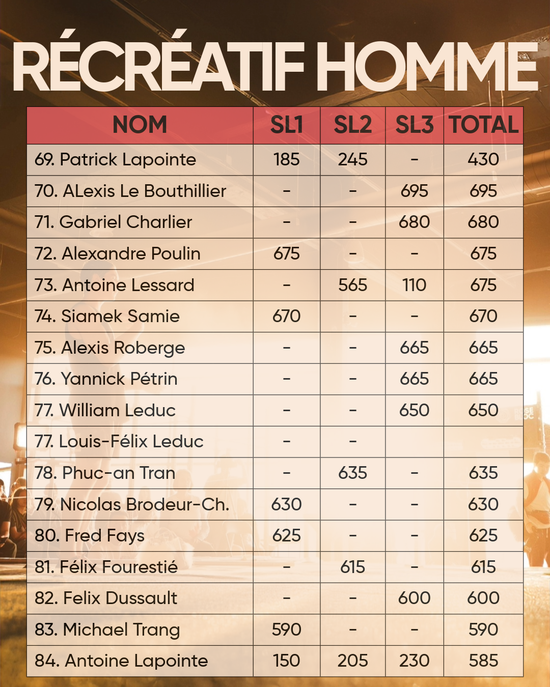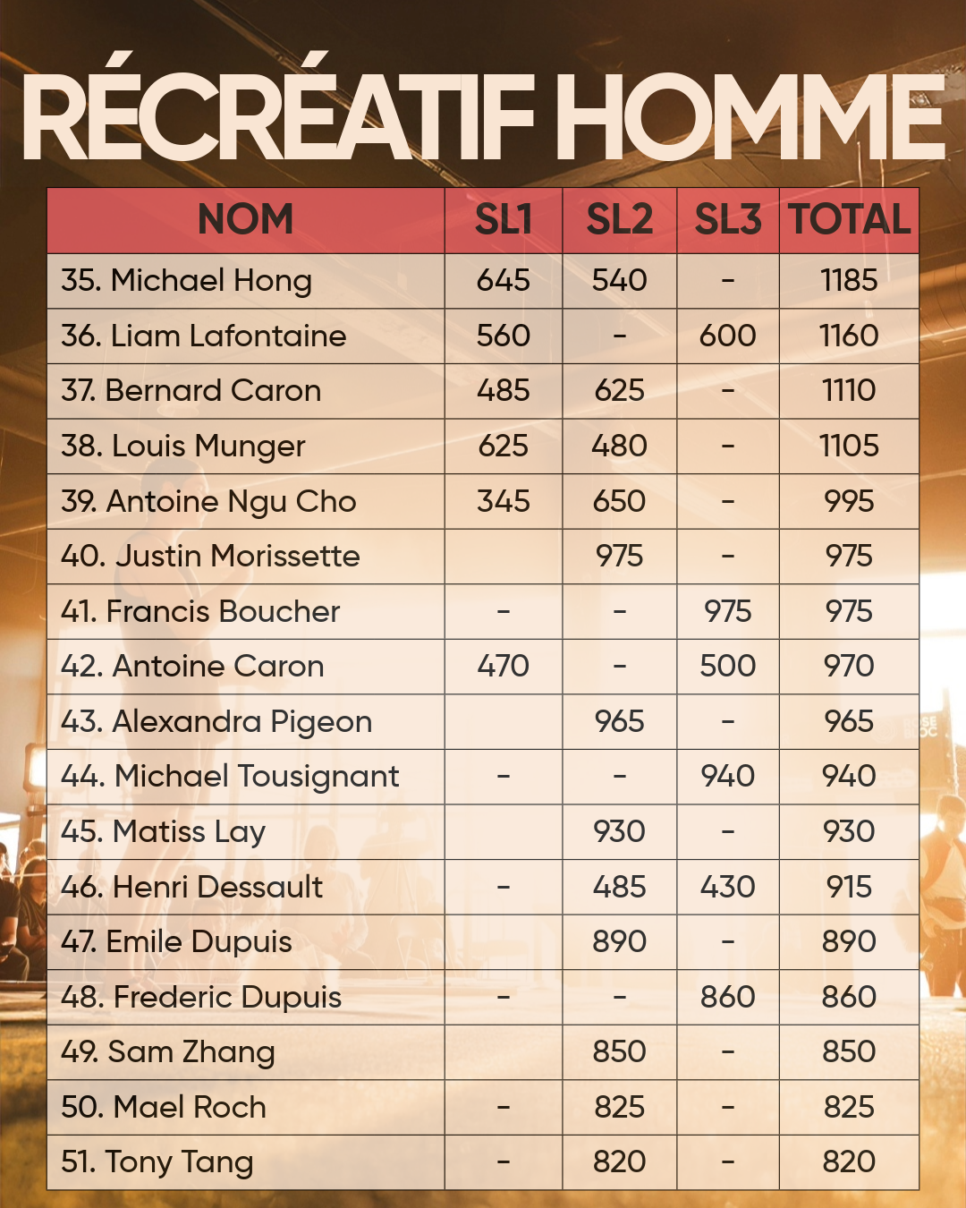 • Récréatif hommes (1–9)